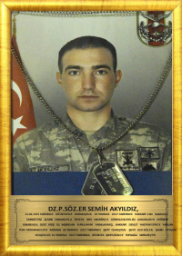 15.06.1991 TARİHİNDE KÜTAHYA'DA DOĞMUŞTUR. 29 TEMMUZ 2017 TARİHİNDE HAKKARI-VAN KARAYOLD EMNİYETİNİ ALMAK MAKSADIYLA TESTERE SIRTI MEVKİİNDE GÖREVLENDİRİLEN UNSURLARIN DEĞİŞİNİ ESNASINDA DOST ATEŞİ İLE BAŞINDAN VURULARAK YARALANMIŞ, HAKKARİ DEVLET HASTANESİNDE YAPILAN TÜM MÜDAHALELERE RAĞMEN 30 TEMMUZ 2017 TARİHİNDE ŞEHİT OLMUŞTUR. ŞEHİT DZPSÖZER SEMİH AYYILDIZ 2016/51125 31 TEMMUZ 2017 TARİHİNDE KÜTAHYA ŞEHİTLİĞİNDE TOPRAĞA VERİLMİŞTİR