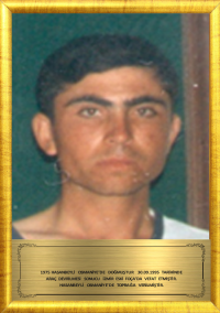 1997 ARAP GİR/MALATYA DOĞUMLU OLUP 02.01.1998 TARİHİNDE İNTİKAL EĞİTİMİ SIRASINDA KAYGAN ZEMİNDEN DOLAYI KAYARAK KENDİSİNE AİT G-3 PİYADE TÜFEĞİNİN ATEŞ ALMASI SONUCU ENE ALTINDAN VURULARAK VEFAT ETMİŞTİR. MEMLEKETİ OLAN MALATYA'DA TOPRAĞA VERİLMİŞTİR.